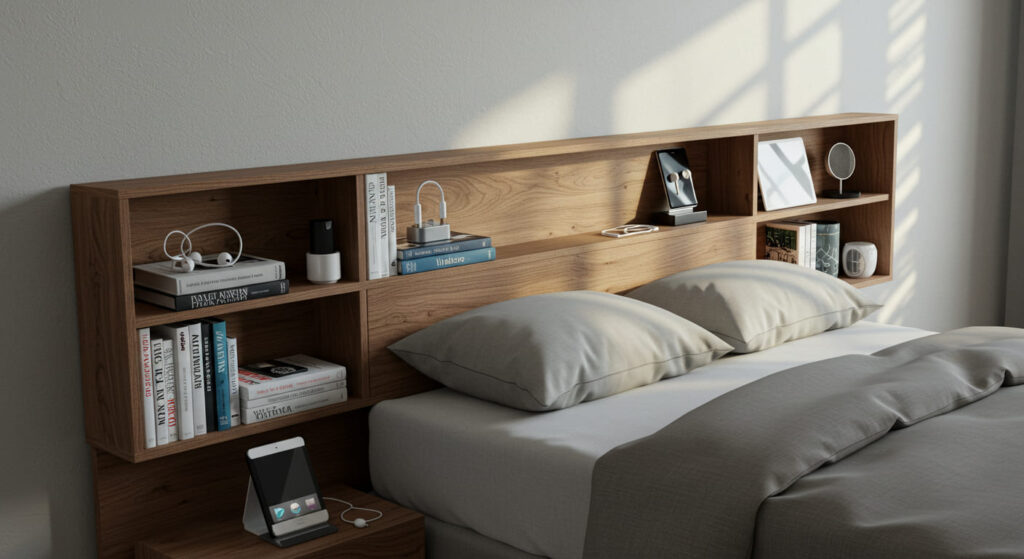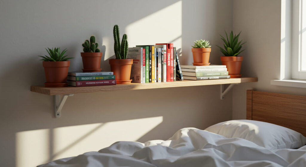 - Reclaimed wood or MDF: For shelves, headboards, or frames.