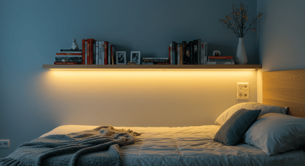 - Install: Stick LED strips under shelves, along the headboard, or around a mirror.